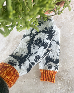 Mönstret börjar med 68 maskor och ökar till 80, om du stickar löst behöver du sticka med 2 mm stickor. Jag gillar att ha många maskor för att få plats med så mycket mönster som möjligt på mina vantar.