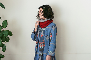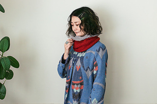 輪で編むカウル . 編み始めは Sprint で模様編みし , 続けて Pop でメリヤスを編む . 最後は綴じはぎしていない .