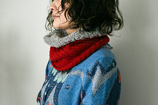 A cowl worked in the round, beginning with Sprint in stitch pattern then with Pop in St st.
