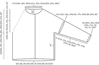32½ (36, 39, 42½) (46, 49, 52½) (56, 59, 62½)“. 0” to 6” ease recommended.