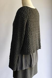 The raglan shaping is perfectly integrated with the stitch pattern, which combines a type of tuck stitch with small cables.