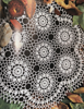 Seven motifs with an edging form a fancy scalloped edge circle.