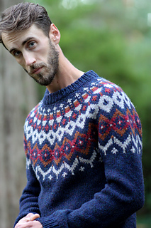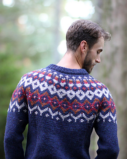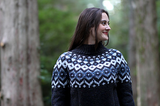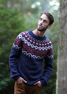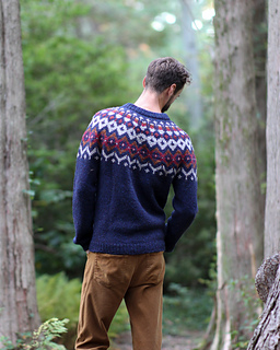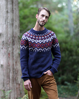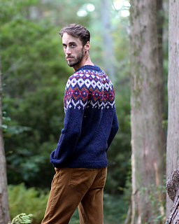 This unisex sweater is worked from the top down, featuring menswear and womenswear modifications, including tapered menswear waist shaping and two collar finishing options.