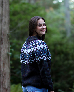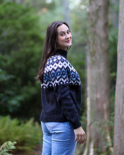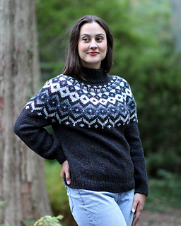 • Lower body and sleeves are worked in the round from the top down and finished with 1x1 Rib hem/cuff.