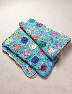 McGill brings the garden inside, starting with 120 granny squares constructed of puff and cluster stitches, their petals made of the myriad posy tints of SONATA SHIMA #1016 Kuwana, and surrounded by SONATA #40 Waterfall. Arrange the variegated