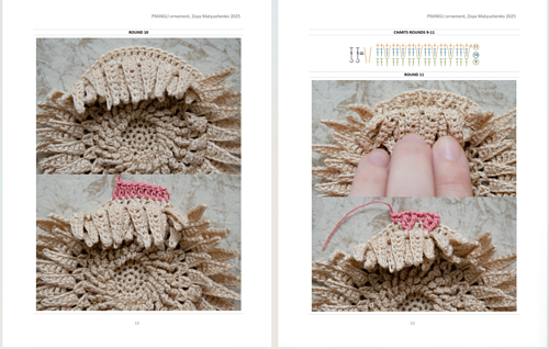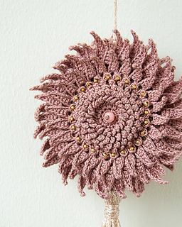 The pattern consists of 11 rounds. Finished piece will be about 10 cm across and 3 cm thick.