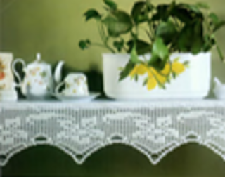 Lace for shelf depicts flowers. Bottom edge is zigzag.