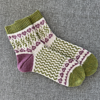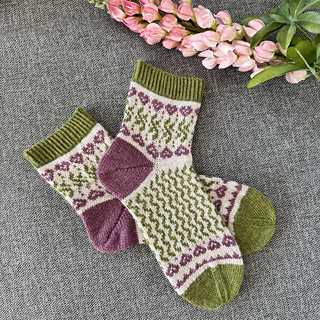 Sockan Prima Vera stickas i tre färger i tunt sockgarn (400-430 m/100 g). Mönstret kan lätt anpassas efter längden på foten. Hälen stickas med German short rows, vilket gör att du inte behöver plocka upp maskor. Skaftet är lite kortare, vilket passar bra till vår och sommar. Stickfasthet 37•40 maskor på 10•10 cm. Föreslagna stickor är 2 mm till resåren och 2,5 mm till resten av sockan. Gör alltid en provlapp för att vara säker på att du får den storlek du vill ha. Tagga mig gärna om du stickar efter detta mönster. Det är så roligt att få se olika färgkombinationer.
