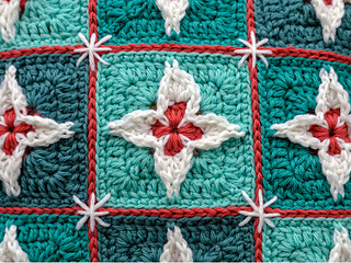 Primitive Star Pillow is a cute little pillow cover for a 12” cushion inner. Made from cute little granny squares featuring a star at the centre worked in three colourways. I’ve added little embroidery stars at the corners of the central block for extra cuteness.