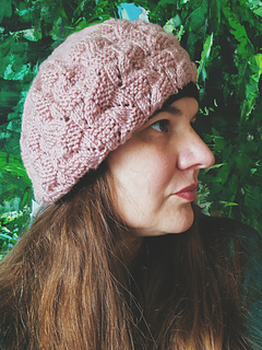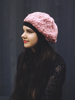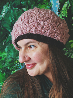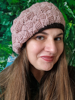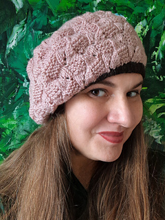 Modern beret featuring geometric block stitch pattern creating dimensional, faceted texture. Optional solid inner lining creates a reversible design - textured blocks outside, smooth stockinette inside. Optional contrasting bottom edge for color blocking. Seamless construction with professional finishing.