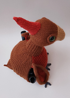 Warm Gingerbread and Copper shades from Stylecraft Special DK give the cosy a rich, earthy look, and the folded wings sit neatly at the sides as if the pterosaur has just landed. Little claws and toes hint at his feet, adding to the prehistoric charm.