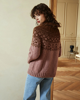 Inspiriert vom klassischen Norwerger-Pullover: #pullover_florence wird mit der Top-down-Methode in einem Stück von oben nach unten gestrickt. Gestartet wird mit dem Rollkragen, der in eine Rundpasse mit Jacquardmuster übergeht. Strickanleitung für Größe 36 bis 42.
