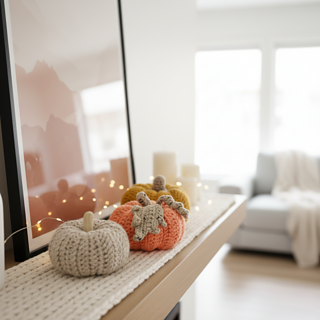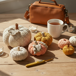 Pattern include instructions for pumpkin, 2 stem variations, tendrils and leaf. So you have a lot of possibilities to customise your pumpkin.