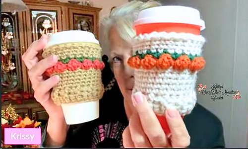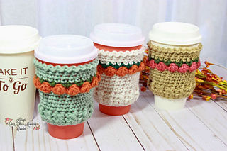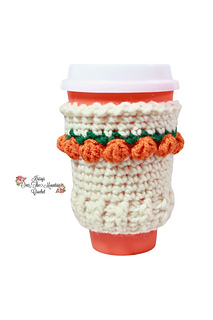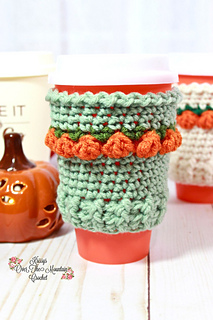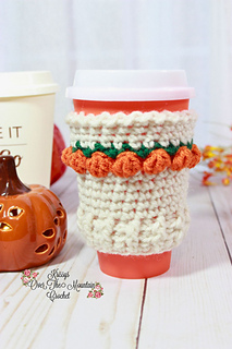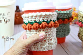 What a fun, Fall Pumpkin Coffee Cozy Crochet Pattern! It features a cute row of textured pumpkins that circle the top of the cozy, making it perfect for fall markets, gift giving, and seasonal décor.