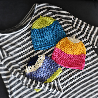 The stitch pattern, which mimics the scale pattern of a pinecone, is stretchy, so bear this in mind when choosing the hat size. A little stem gives the hat a cute final touch, however, you can skip it.