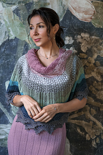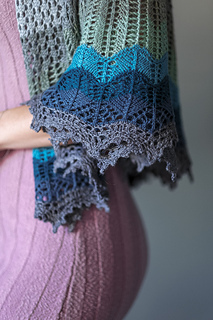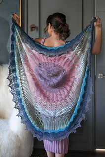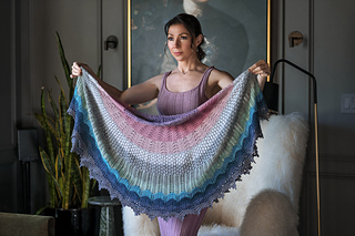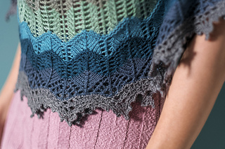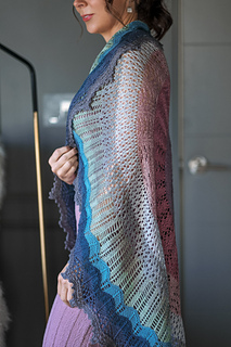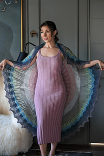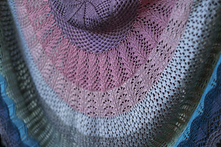 - The sample shawl used approximately 1207 m / 1320 yds in total: Color A) 46 m / 50 yds, Color B) 55 m / 60 yds, Color C) 110 m / 120 yds, Color D) 105 m / 115 yds, Color E) 124 m / 135 yds, Color F) 119 m / 130 yds, Color G) 101 m / 110 yds, Color H) 110 m / 120 yds, Color I) 91 m / 100 yds, Color J) 105 m / 115 yds, Color K) 101 m / 110 yds, and Color L) 142 m / 155 yds.