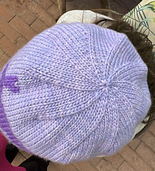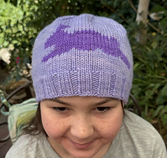 The rabbit is charted facing left as shown or right. It is optional using duplicate stitch. The colors shown are Malabrigo Worsted (so yummy!) in Periwinkle for the hat and the rabbit in Purple Mystery. I absolutely love Malabrigo yarns, in particular the Worsted. It’s beautiful merino wool. Merino is an absolutely great wool. It’s soooo soft and can puff up to look good or squish down to fit a multiple range of needle sizes with equally pleasing results. The Malabrigo dying process makes absolutely lovely and vibrant colors. The hat at the end of photos is made from Knit Picks Chroma Worsted Weight. You can use any worsted or Aran weight as long as you can achieve the correct gauge. I included the photo so you can see how the hat looks without the duplicate stitch rabbit.