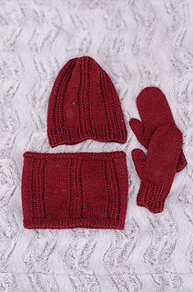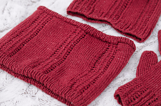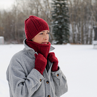 This collection of accessory patterns includes instructions to make 3 items: a cowl, hat, and pair of mittens. They feature a simple lace pattern which creates a subtle scalloped edging throughout the ribbing portions. The cowl is written to allow a double layer of knitting to add structure and warmth, or simply single-layered. All three patterns are worked in the round using a super luxurious wool and yak blend, dk-weight yarn.