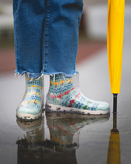 Here in the PNW we get a lot of misty, rainy days. There’s nothing more fun than sporting your brightest rain gear to offset to weather, so why not add some rainy day socks to the mix? These socks are designed to use as many (or as few) colors as you’d like for the umbrella motifs. You can make an all one-color umbrella pair to match your outfit, or throw in as many different colored umbrellas as you’d like!