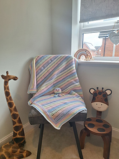 This beautifully colourful baby blanket uses a selection of pastel shades to create a lovely striped rainbow design. The repeated techniques used make for a very relaxing crochet project. The pattern also includes the addition of a cuddly companion, which has a squishy body and twisted tentacles for little ones to grasp, making it the perfect sensory toy. This pattern is easily adaptable should you prefer to create in your own colour scheme using other shades from the Woolcraft Baby Care DK range. Also available as a knitting pattern.