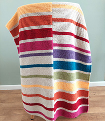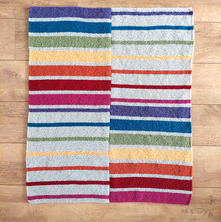 This gorgeous baby blanket in beautiful rainbow colors would be a great homemade baby shower gift. A very easy gartner stitch gives this fresh, modern design a great texture and works really quick up.