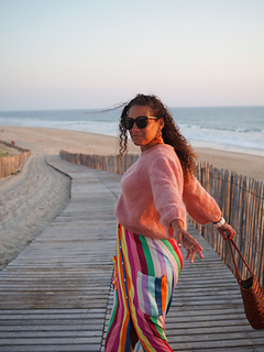 Une blouse en mohair, c’est léger, aérien, ça ne pèse rien dans le sac et elle sera la parfaite alliée pour les soirées plus fraîches.