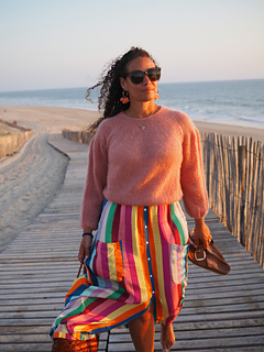 Son allure simple lui permet toutes les couleurs des pastels aux fluos. On peut même lui ajouter des fines rayures pour en faire une marinière, des rayures plus grosses en color block ou un joli dégradé.