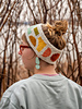 The headband can be made in two versions: A plain version featuring 11 colourful shapes, or a twisted version with 9 colourful shapes and a centered, front twist.