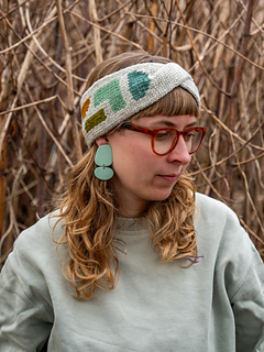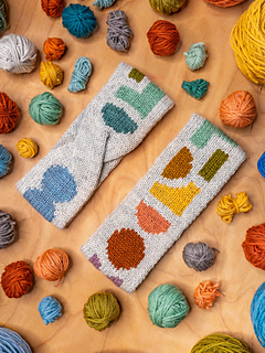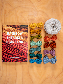 You can purchase hand-dyed knit kits for the Rainbow Intarsia Headband here.