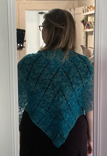 It’s symmetrical, wide and relatively shallow (when compared to a simple triangle shawl), so you can wear it as a triangle scarf on colder days and as a wrap on summery evenings.