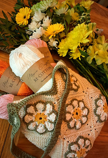 The Re-Cotton Bloom Bag, designed for Utopia Crafts, is a contemporary crochet design that blends timeless floral charm with modern craftsmanship.