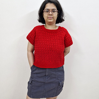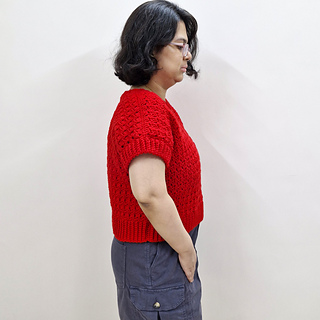 Crocheted in a weight-4 yarn, the Red Roses Top is a modern crochet sweater vest featuring delicate texture. This is the cropped version but the length can be easily altered. Romantic, gorgeous, and easy to style, the Red Roses Top is a charming addition to your handmade wardrobe.