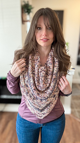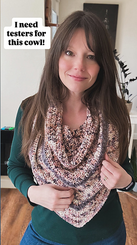 his cowl looks like a triangle scarf but none of the fuss of positioning. Just slip it over your head and go! There is so many ways to dress this cowl up or down, and they will all be perfect!!