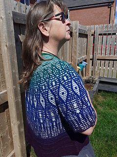 Techniques used: Knitting in the round, short rows, knit and purl increases, mosaic knitting.