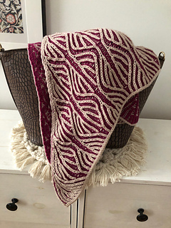 This knit is a reversible and elegant design. Set off your favorite colorful or variegated yarn on one side with contrasting background color on the other side. The result is like two different shawls because the fabric is completely reversible. It’s a lovely modern shawl, and is an interesting and pleasant knit that is sure to be a staple in your wardrobe. Perfect for your next cold day adventure, it is as enjoyable to knit as it is to wear. Dress to impress!