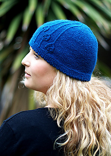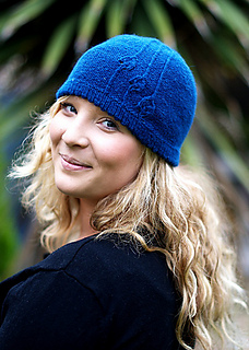 Inspired by the work of Charles Rennie Mackintosh, this feminine beanie features a cluster of leaf motifs on a reverse stocking stitch background. Growing up from the soft picot edged brim, the leaf motifs graduate towards the crown and integrate with the shaping.