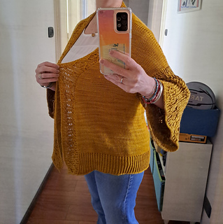 Lunghezza totale: 46 (48, 50, 54, 56, 60) cm misurati lungo il davanti; il cardigan misurerà un paio di cm in più sui fianchi e nella parte dietro.