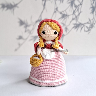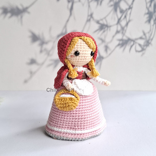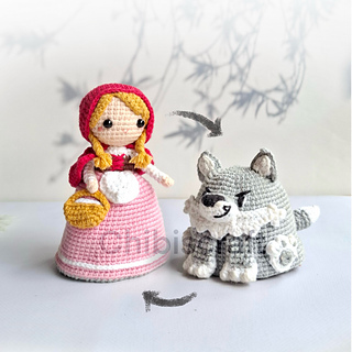 Approximate size: the finished amigurumi is about about 12 cm / 5” tall as Little Red Riding Hood and 6.5 cm / 2.5” tall as the wolf.