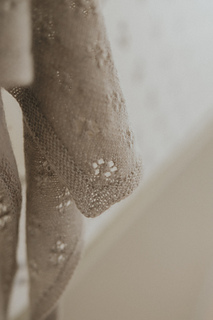 Little lightweight kerchief with an all over lace flower motif and garter edges.
