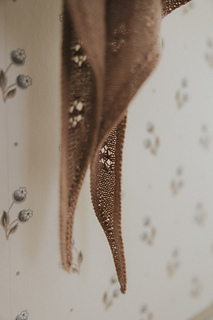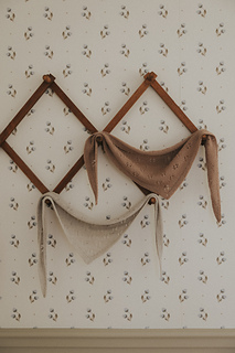 The kerchief is knit from the point up increasing on both sides and on each row for a longer and more shallow triangular shape. Once the main part of the shawl has been knit a garter edge is then added to the sides.