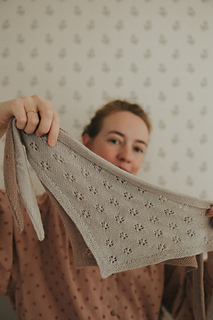 Knitted up with a soft light Cashmere it is perfect to wear close to the neck but you could also play around with the gauge and knit a bigger shawl. E.g. for a larger shawl just pick a thicker yarn and needles to match the yarn.