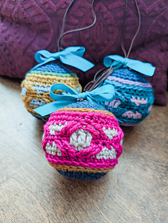 Materials: Worsted weight yarn (four colors), 5.0 mm hook, plastic ornament, tapestry needle