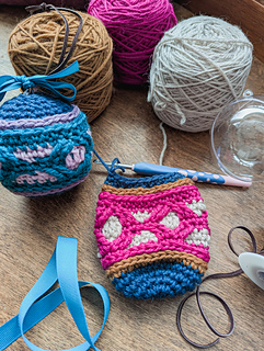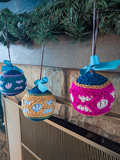 he Rockford Mosaic Crochet Ornament is a modern, geometric ornament designed by Robyn Chachula. Using mosaic-style stitches and simple two-color rounds, this ornament creates a bold textured look that slides neatly over a 10” plastic ball ornament. Perfect for gifting or decorating your home for the holidays.