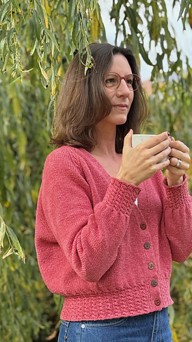 ROSE est un cardigan très féminin avec une jolie ampleur, un col V et des torsades que l’on retrouve sur les raglans, le bas de l’ouvrage et les poignets. Tricoté de haut en bas en une seule pièce, vous pouvez adapter la longueur des manches et du corps très facilement. De plus, je vous explique comment faire si vous préférez une version moins cintrée à la taille.