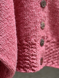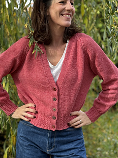 ROSE is a very feminine cardigan with a lovely fullness, a V-neck, and cables found on the raglans, the bottom of the work, and the cuffs. Knitted from the top down in one piece, you can easily adapt the length of the sleeves and body. Additionally, I explain how to achieve a less fitted version at the waist if you prefer.