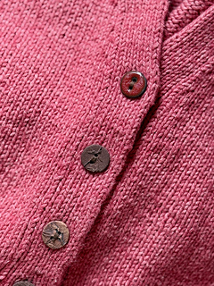 Petit matériel : 5 boutons de 18mm, 1 aiguille auxiliaire pour les torsades, 8 anneaux marqueurs ampoules, 2 scoubidous ou restes de laine pour mettre les mailles des manches en attente, aiguille à laine, ciseaux.