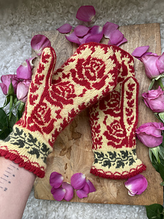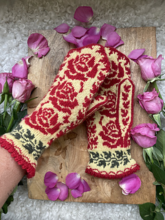 Mönstret börjar med 68 maskor och ökar till 80, om du stickar löst behöver du sticka med 2 mm stickor. Jag gillar att ha många maskor för att få plats med så mycket mönster som möjligt på mina vantar.