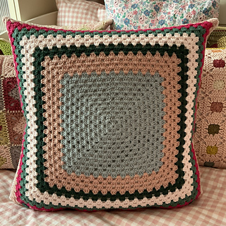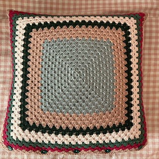 If you would like to use a different yarn and want your pillow to be the same size as mine, compare the yd/g to determine if it would be a good substitute. Otherwise, when you finish the front side, measure it, and it will fit a pillow insert that is 1-2 in (2.5 -5 cm) longer than it.