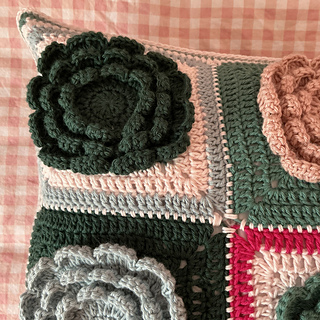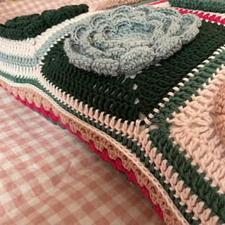 A rose granny square pillow has been on my to make list for a while now! I finally crocheted one over winter break, and I am excited that the pattern is ready in time for Valentine’s Day because it incorporates a lot of shades of pink. However, this pillow can be for any time of year! The back side is a granny square, and the bottom is held together by five buttons, so it can easily be taken on and off the insert.
