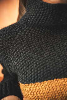 ja neulo kaarroke suljettuna neuleena. Alaosassa kerros alkaa vasemmasta sivusta, mutta yhdistämisen jälkeen kohdasta, jossa takakappale ja vasen hiha on yhdistetty. Raglan kavennukset. Kaulus on ns. löysä ’piippukaulus.’